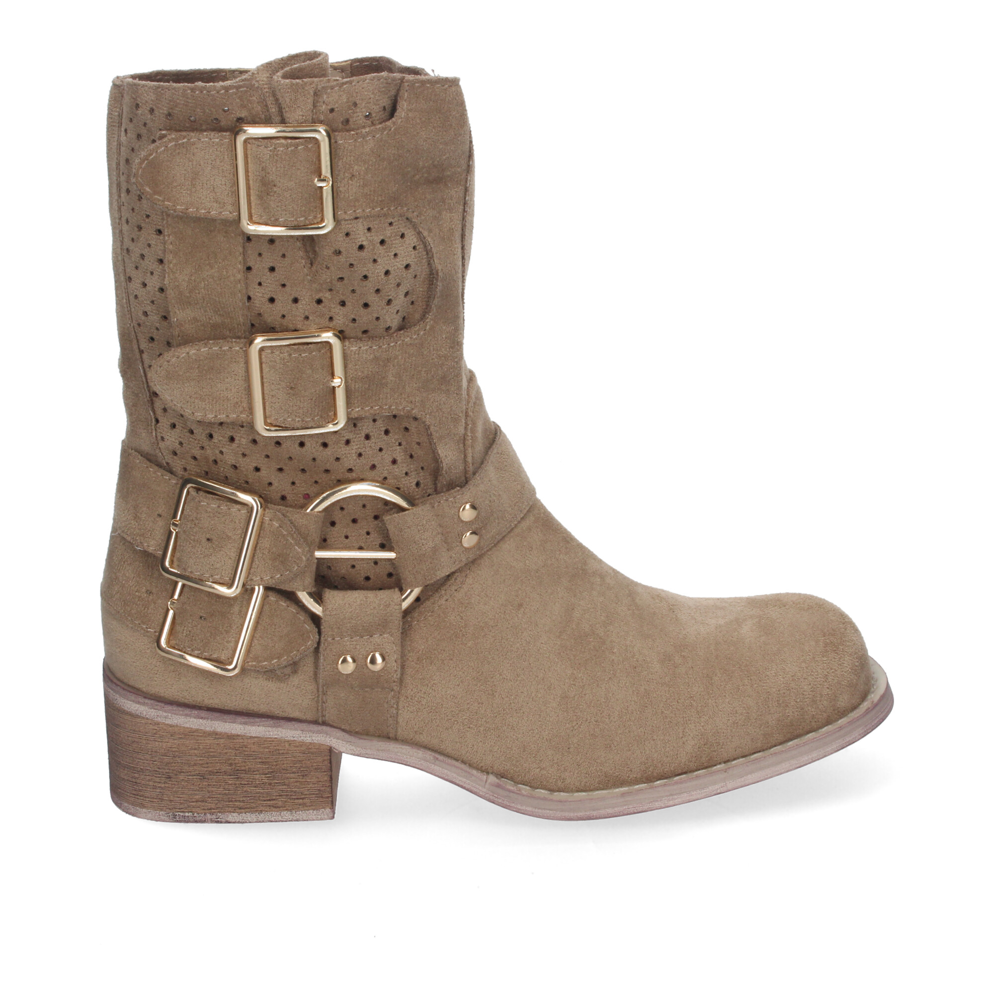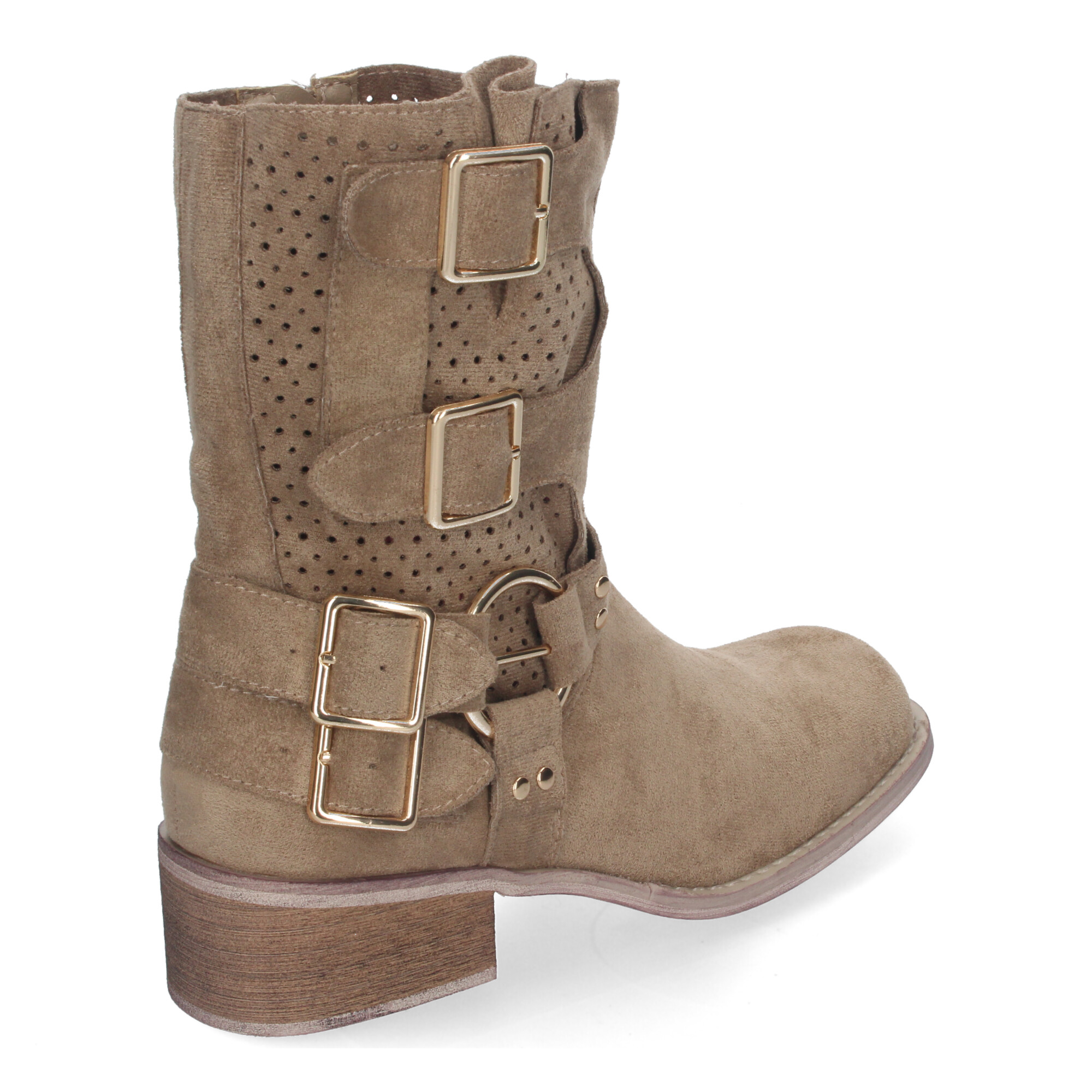 Botines de Mujer con Tac?n Bajo y Adornos de Hebillas Ca?a Calada Cremallera Lateral Punta Redonda Perfectos para Toda Ocasi?n