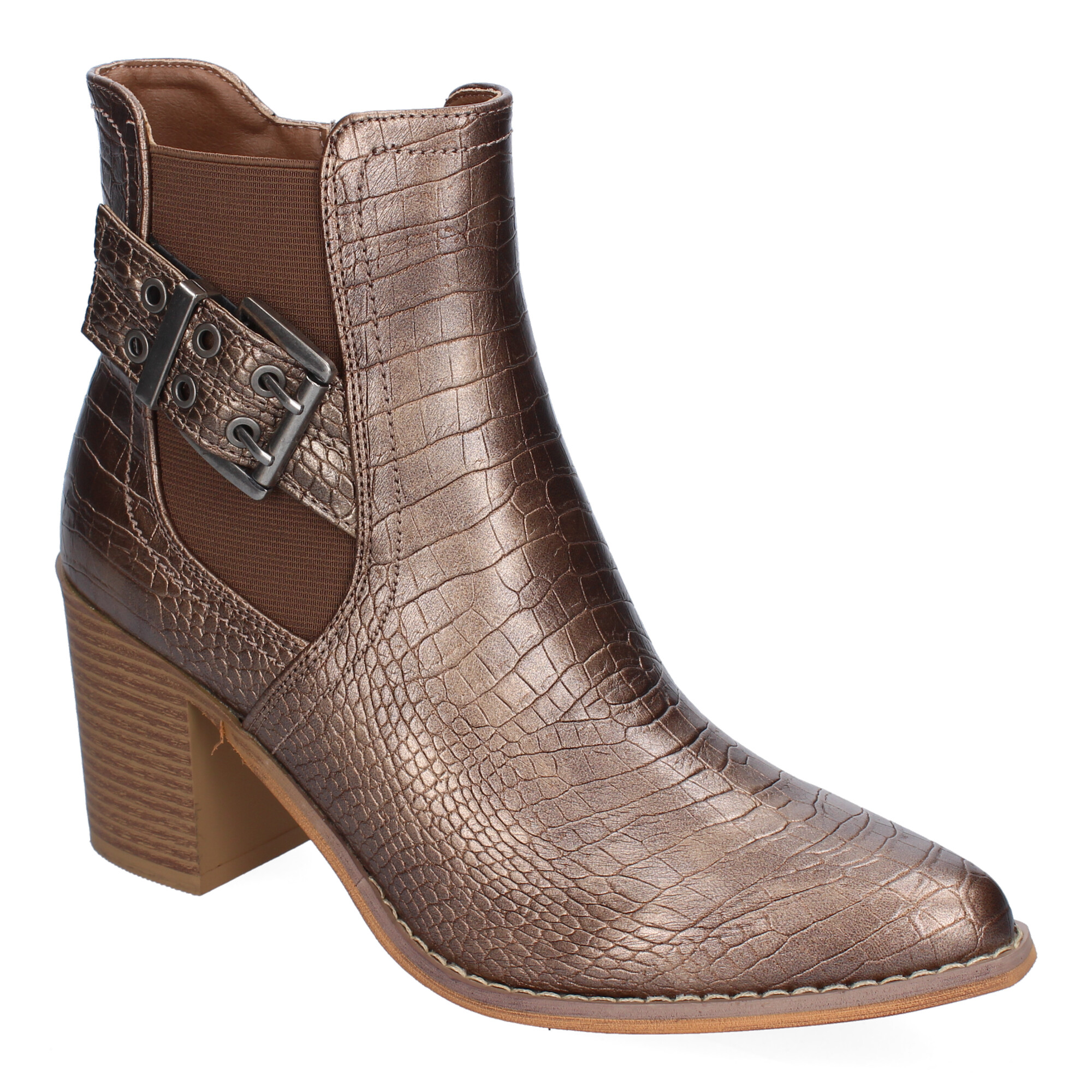 Bot?n de Tac?n para Mujer Comodos y Elegantes Dise?o de Estampado Punta Redonda y Cierre de Cremallera Lateral.
