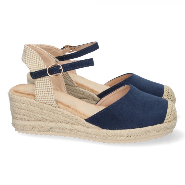 Sandalia de Cu?a para Mujer Forrado de Yute Pala Cerrada y Cierre de Hebilla Primavera Verano