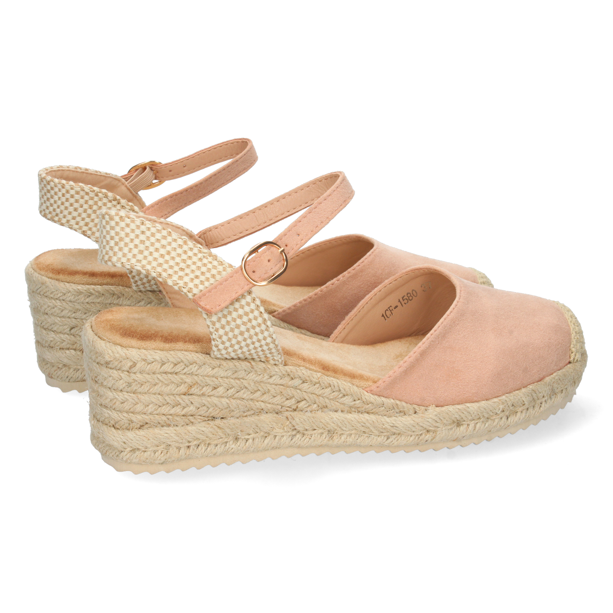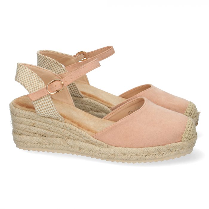 Sandalia de Cu?a para Mujer Forrado de Yute Pala Cerrada y Cierre de Hebilla Primavera Verano