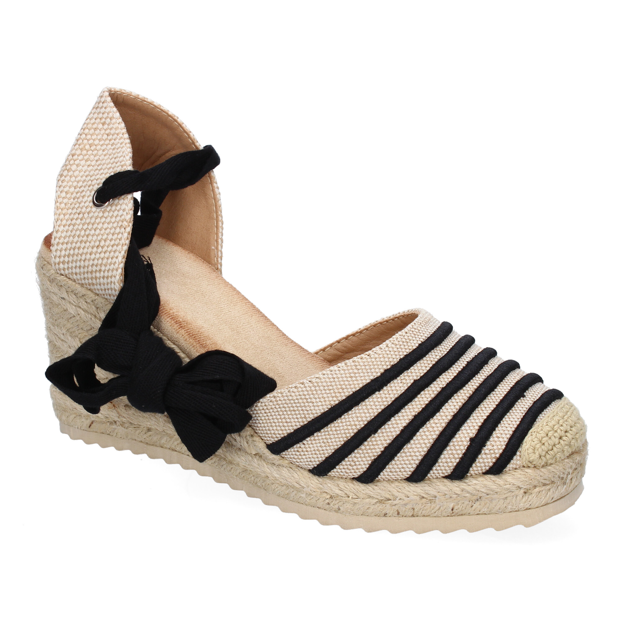 Sandalia de Mujer con Cu?a de Yute Comodas y Elegantes Dise?o Moderno con Cintas para un Cierre Comodo y Detalles en la Pala Ideales para Primavera-Verano.