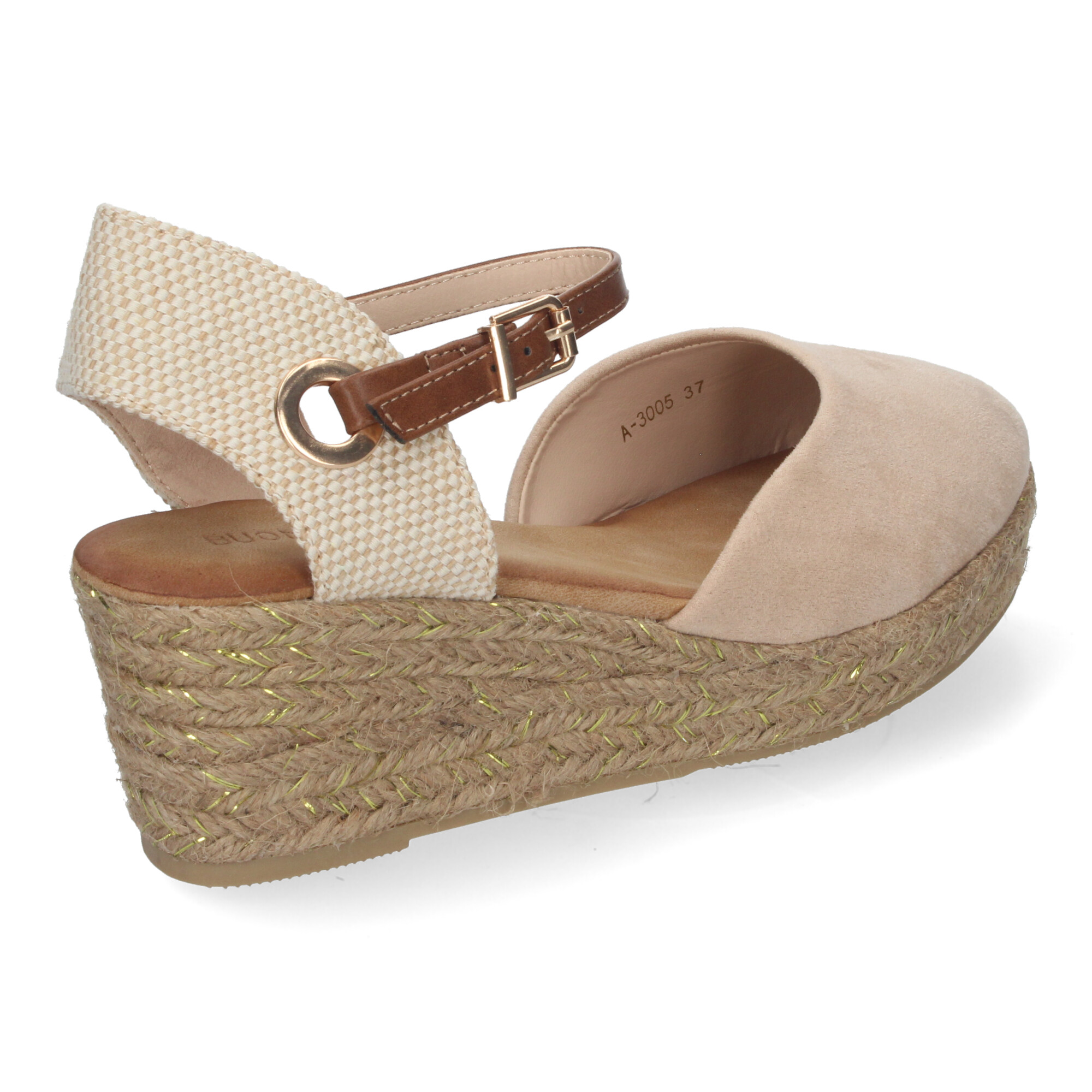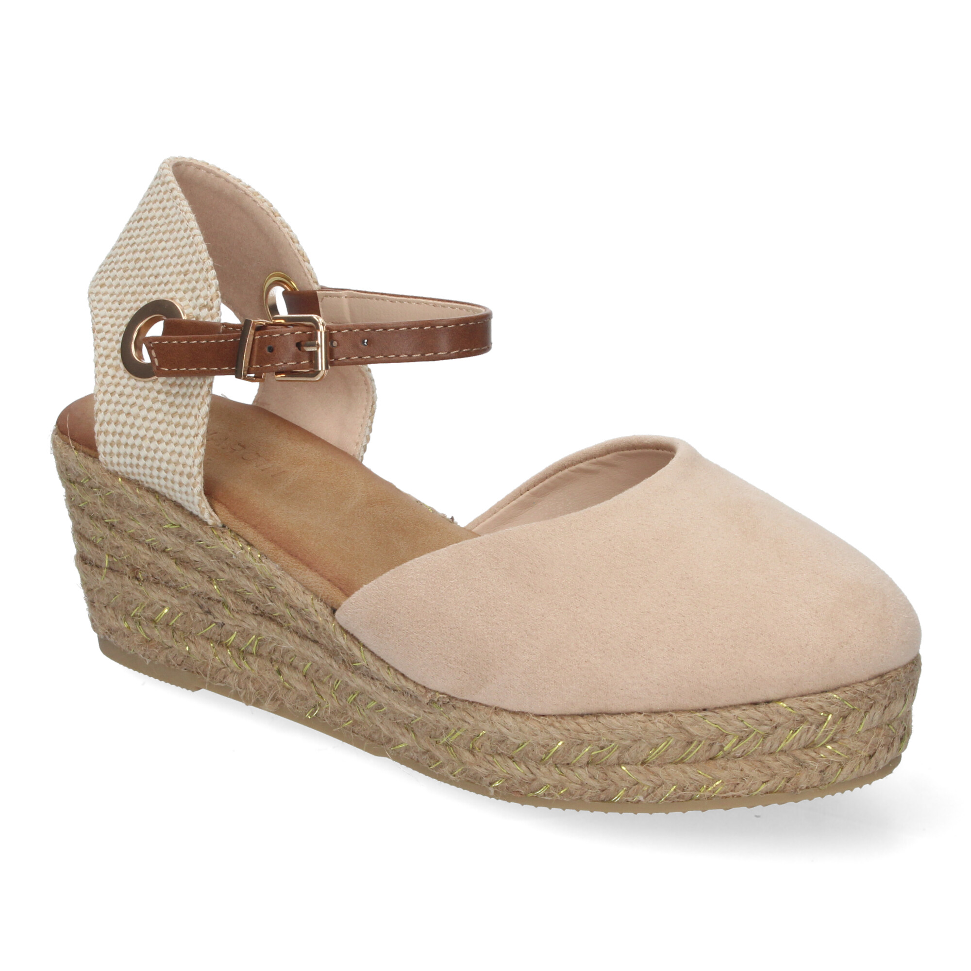 Sandalia de Cu?a de Yute para Mujer C?modas y Elegantes Pala Cerrada Yute con Adornos Brillantes y Cierre de Hebilla Ajustable.