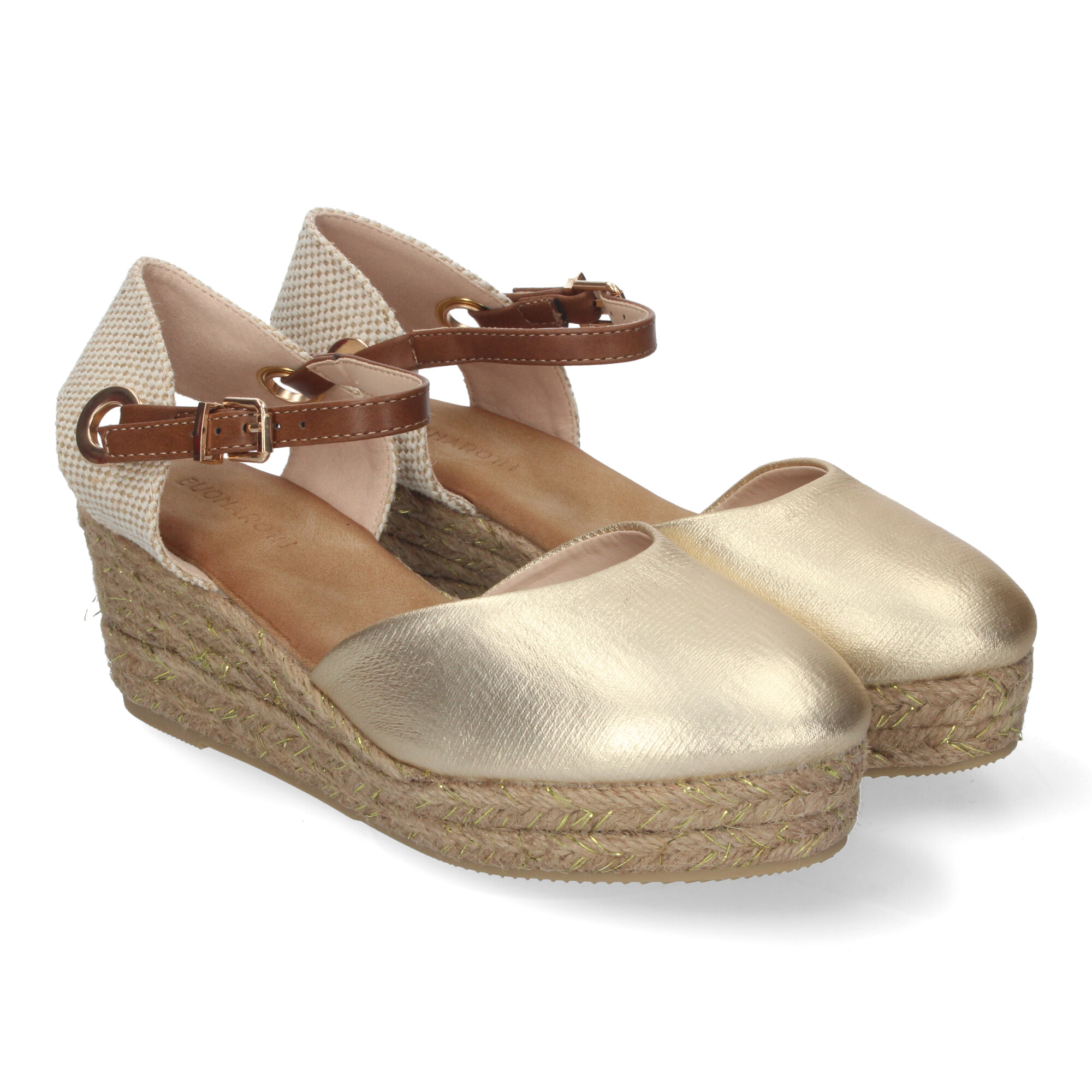 Sandalia de Cu?a de Yute para Mujer C?modas y Elegantes Pala Cerrada Yute con Adornos Brillantes y Cierre de Hebilla Ajustable.