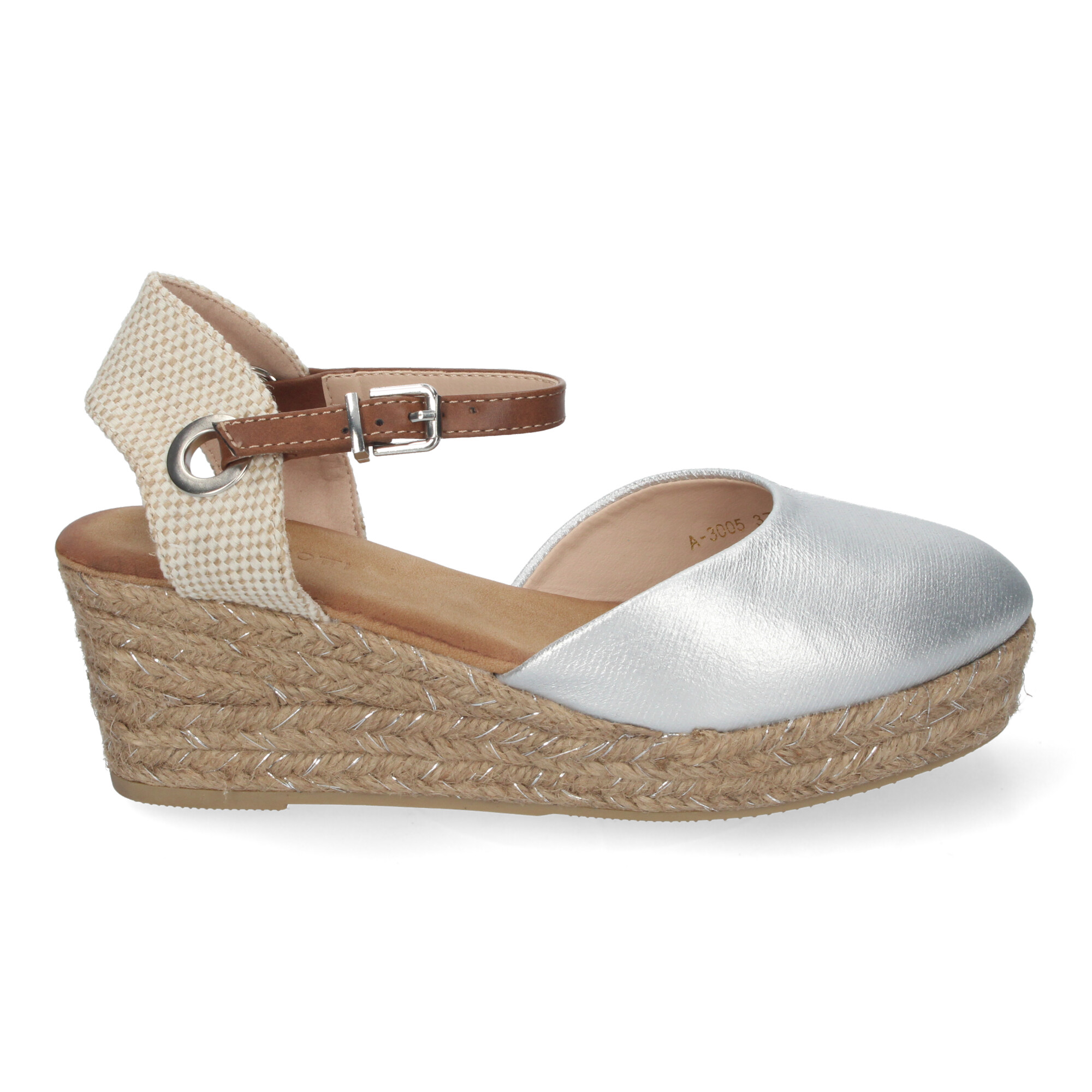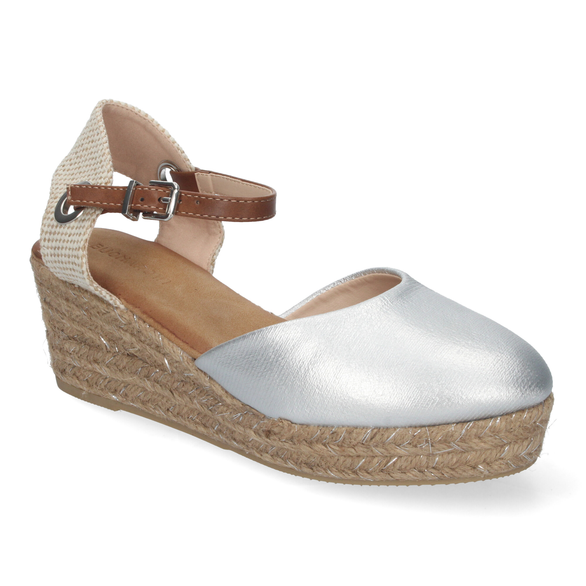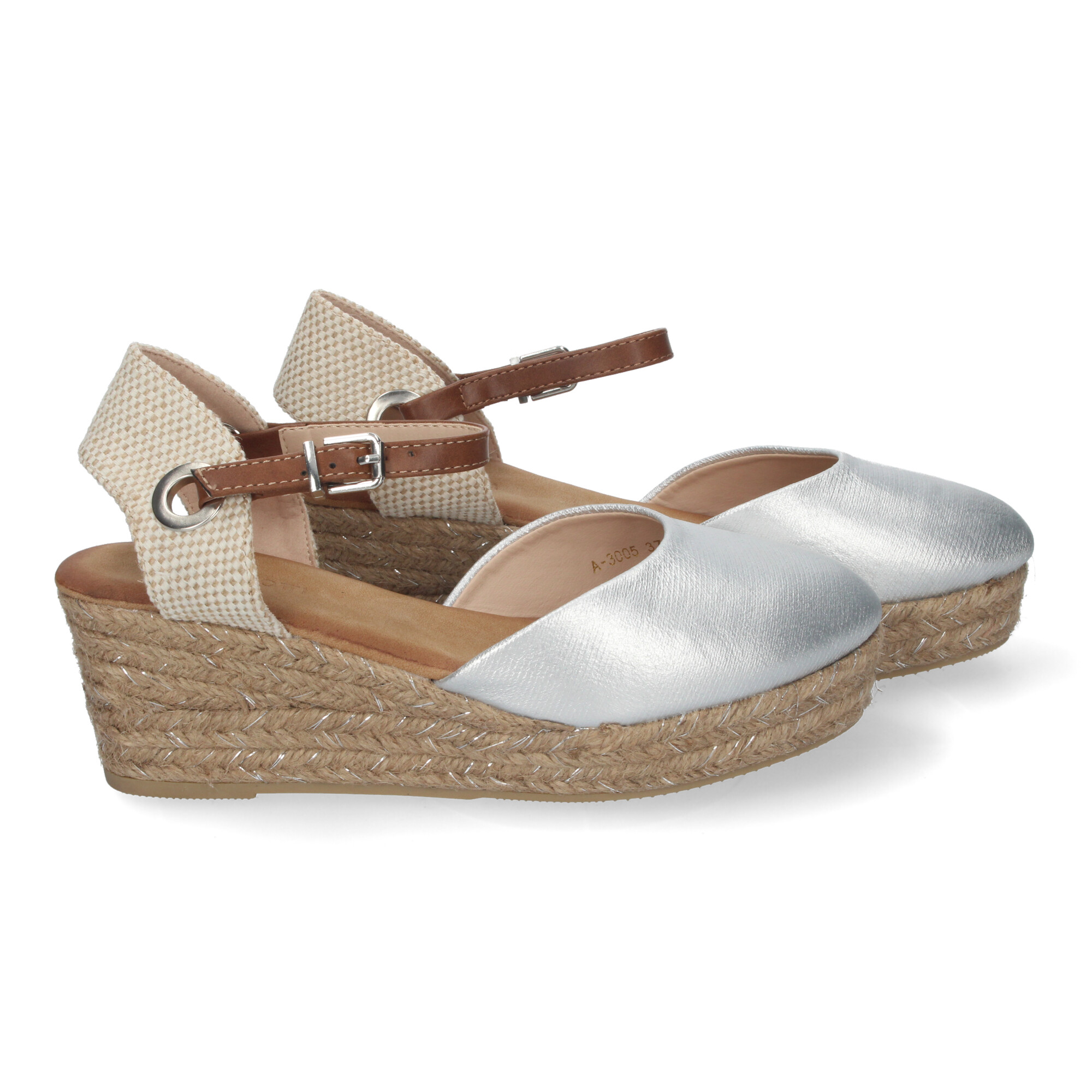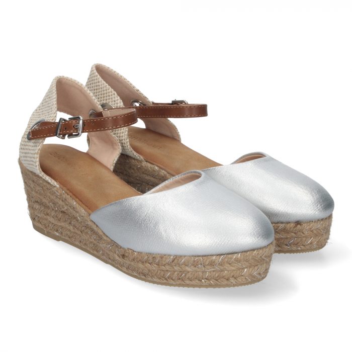 Sandalia de Cu?a de Yute para Mujer C?modas y Elegantes Pala Cerrada Yute con Adornos Brillantes y Cierre de Hebilla Ajustable.