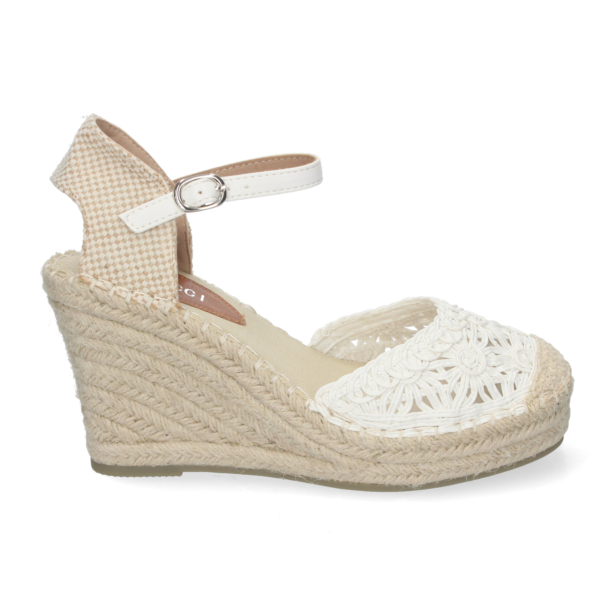 Sandalia de Cu?a de Yute para Mujer Estilo Valenciana con Bordados de Flores Cierre de Hebilla ideal para Primavera-Verano.