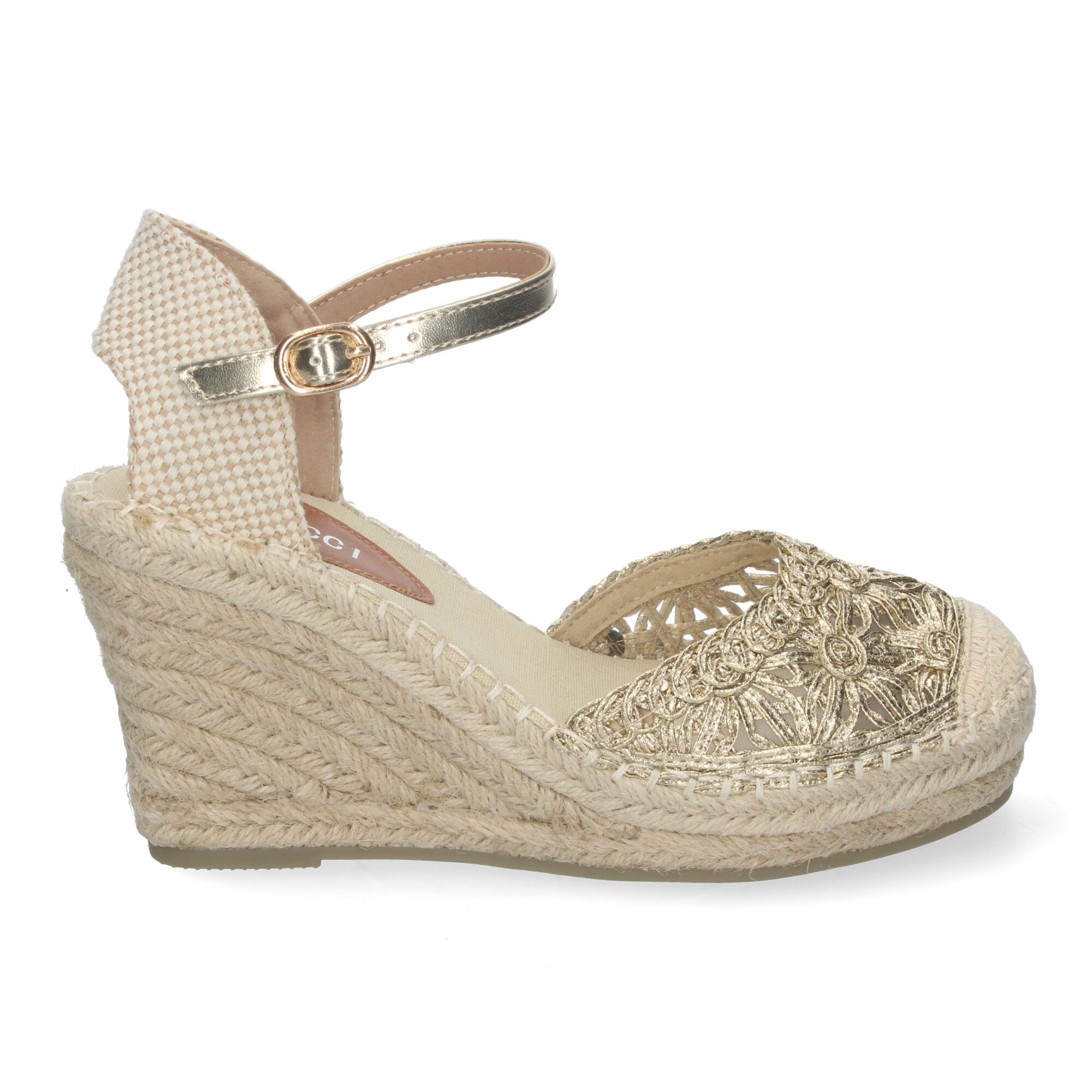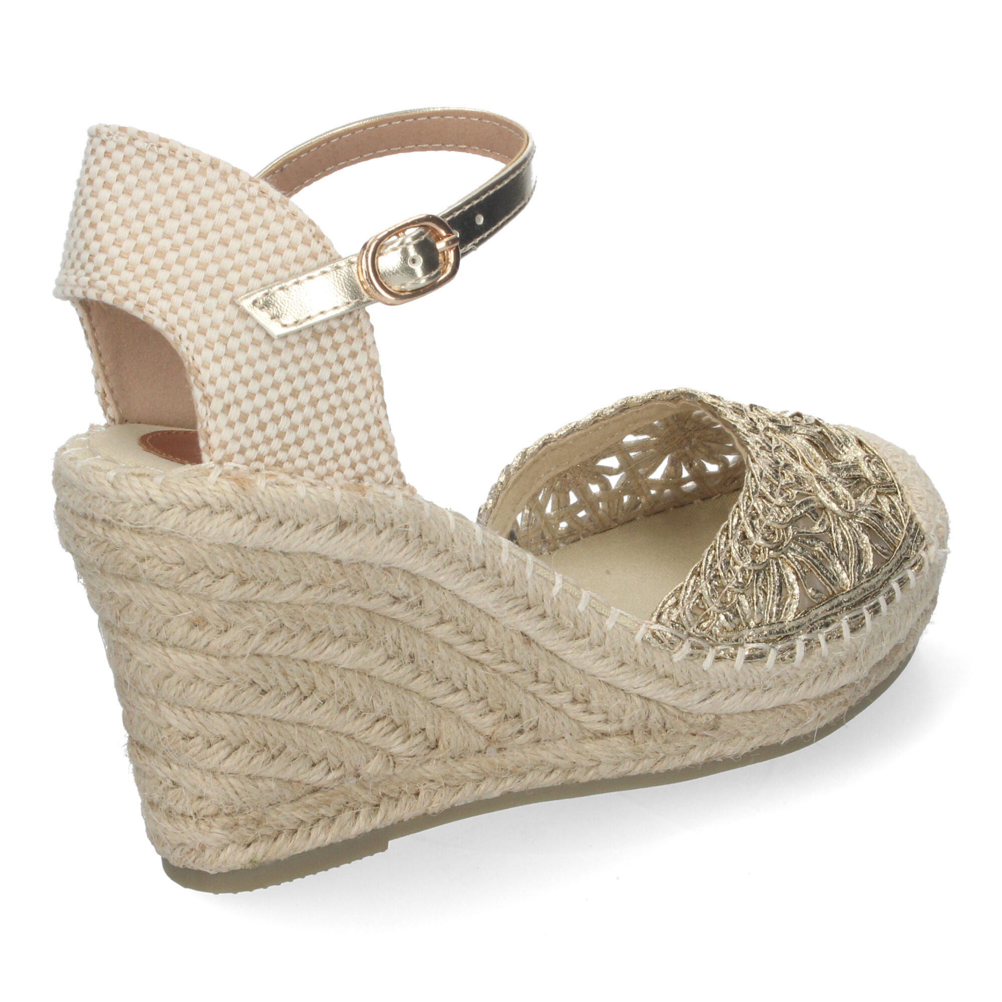 Sandalia de Cu?a de Yute para Mujer Estilo Valenciana con Bordados de Flores Cierre de Hebilla ideal para Primavera-Verano.