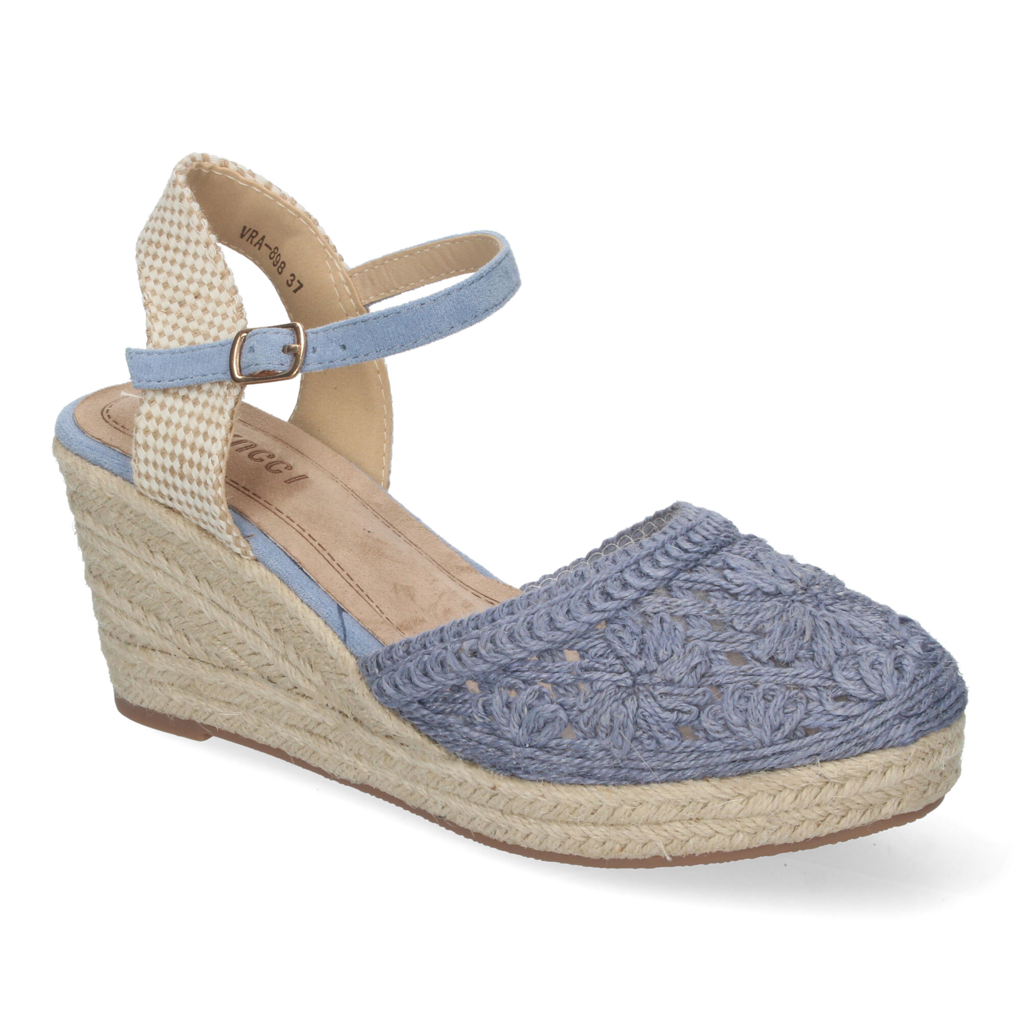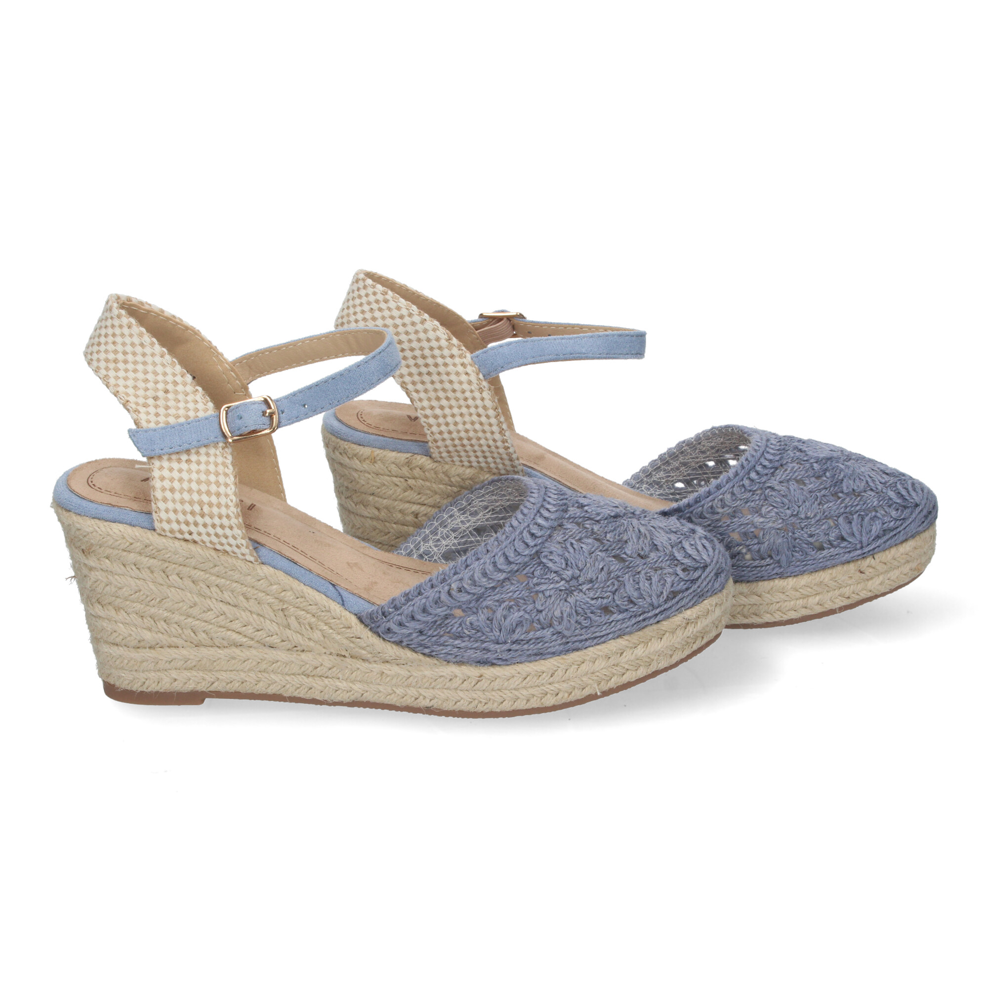 Sandalia de Cu?a de Yute para Mujer Estilo Valenciana con Bordados de Flores Cierre de Hebilla ideal para Primavera-Verano.