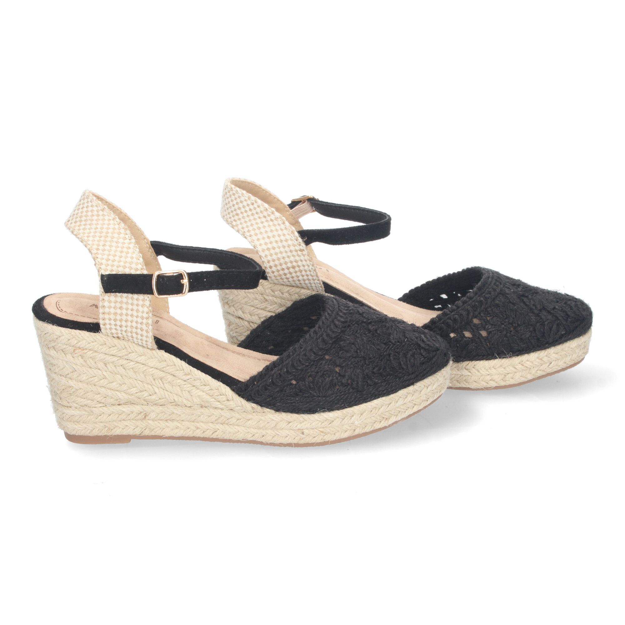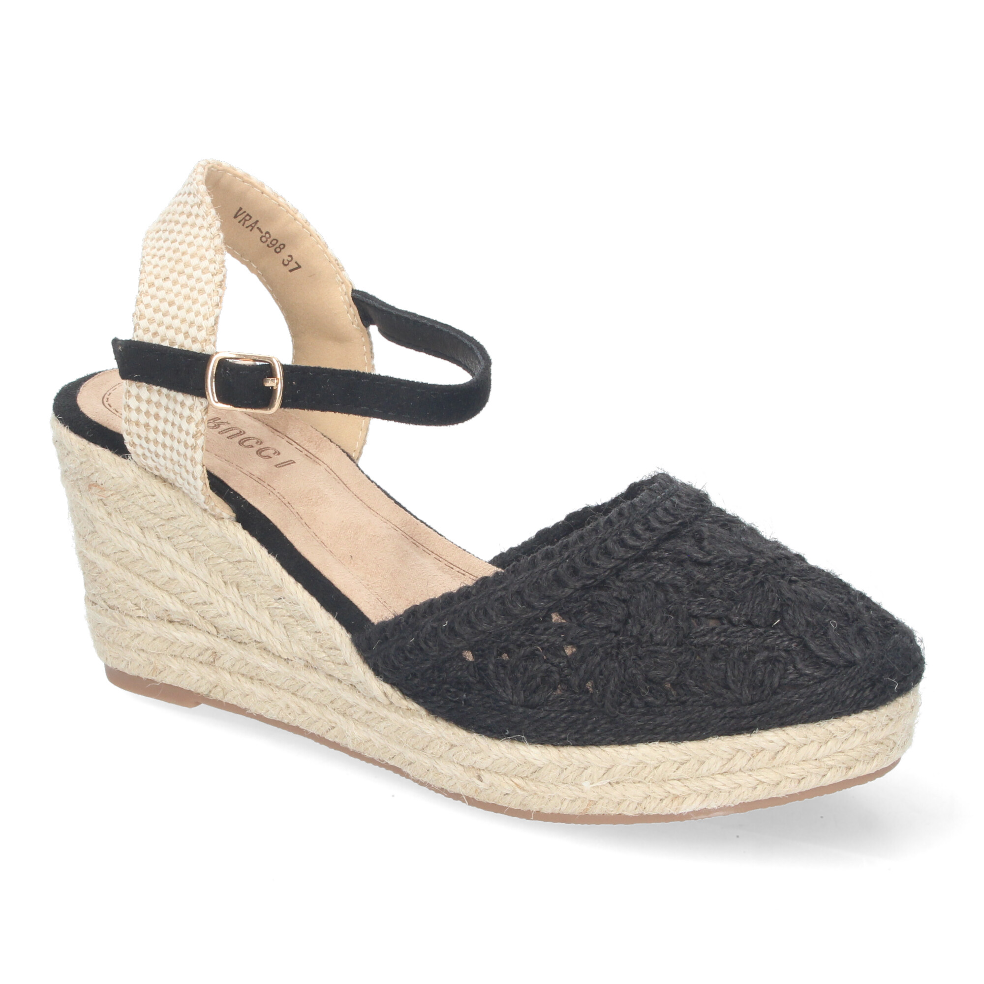 Sandalia de Cu?a de Yute para Mujer Estilo Valenciana con Bordados de Flores Cierre de Hebilla ideal para Primavera-Verano.