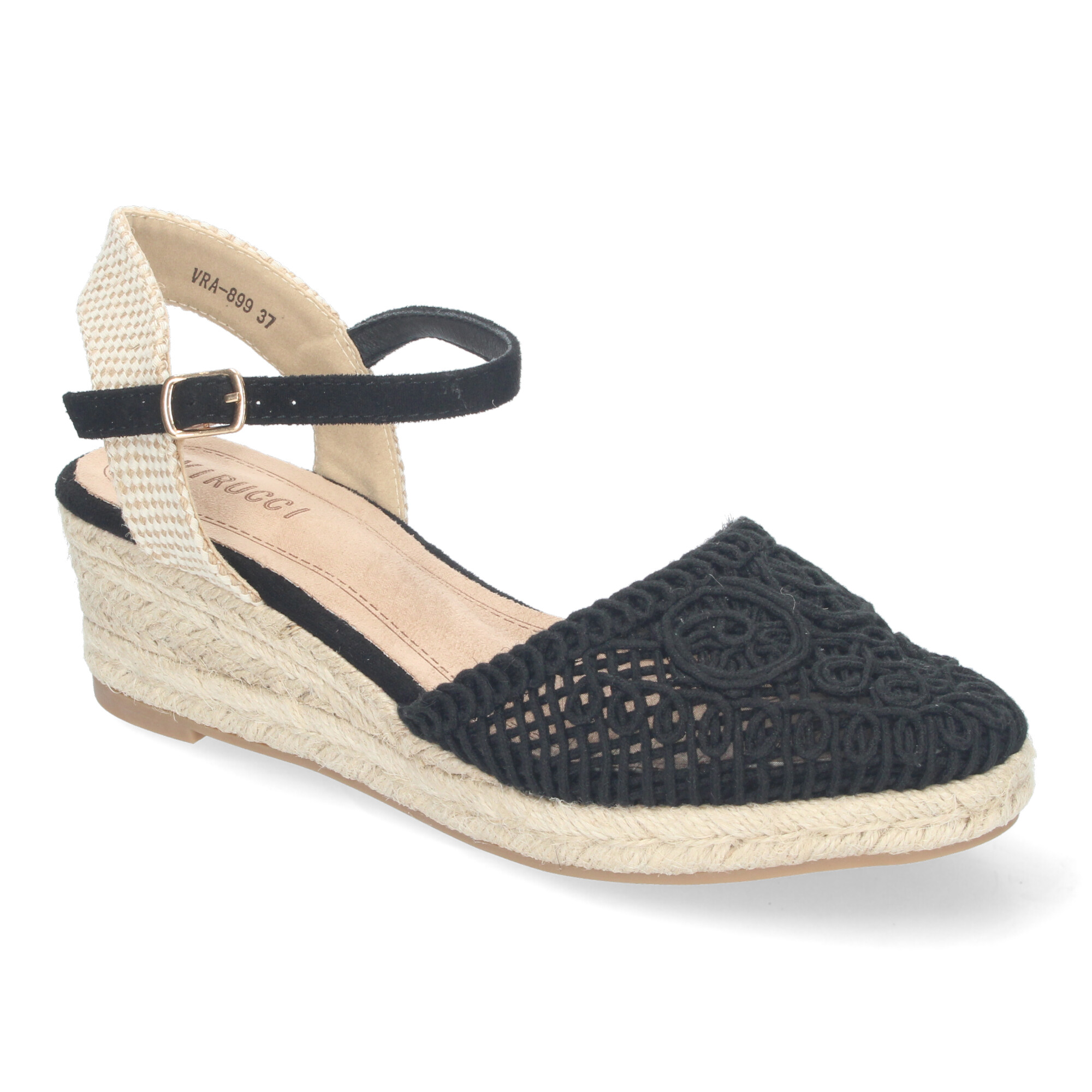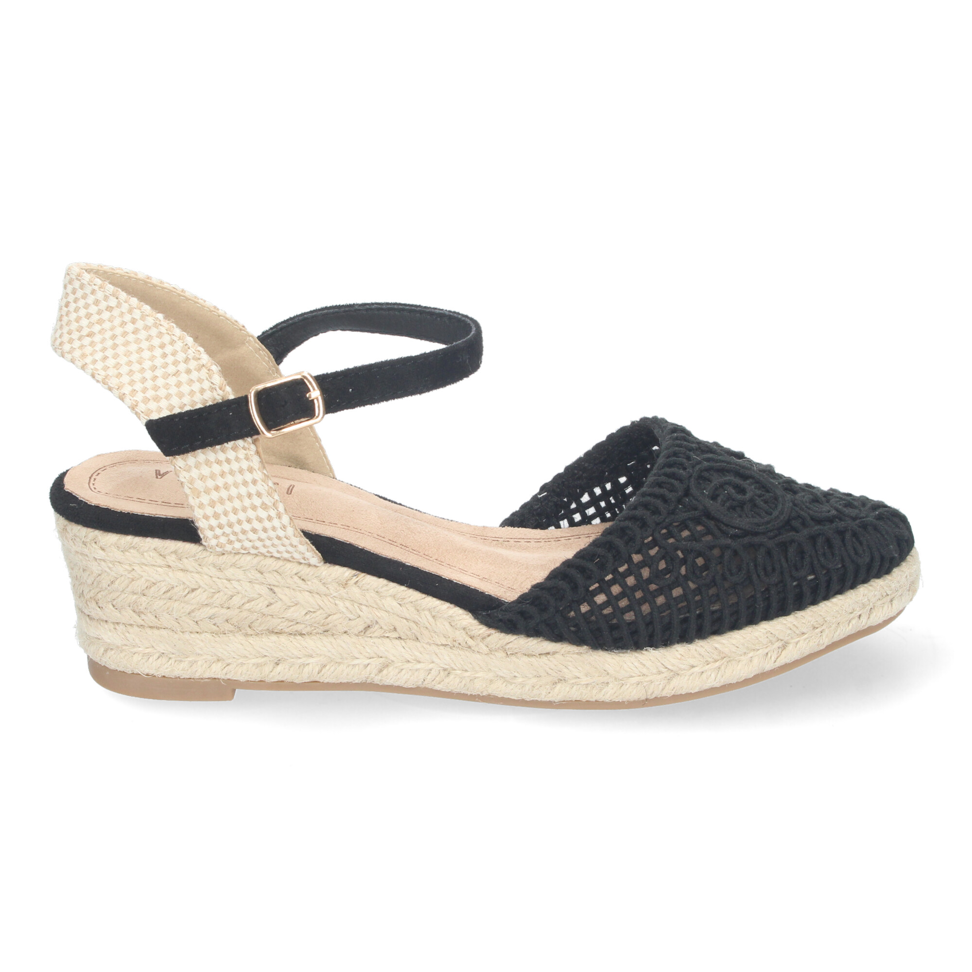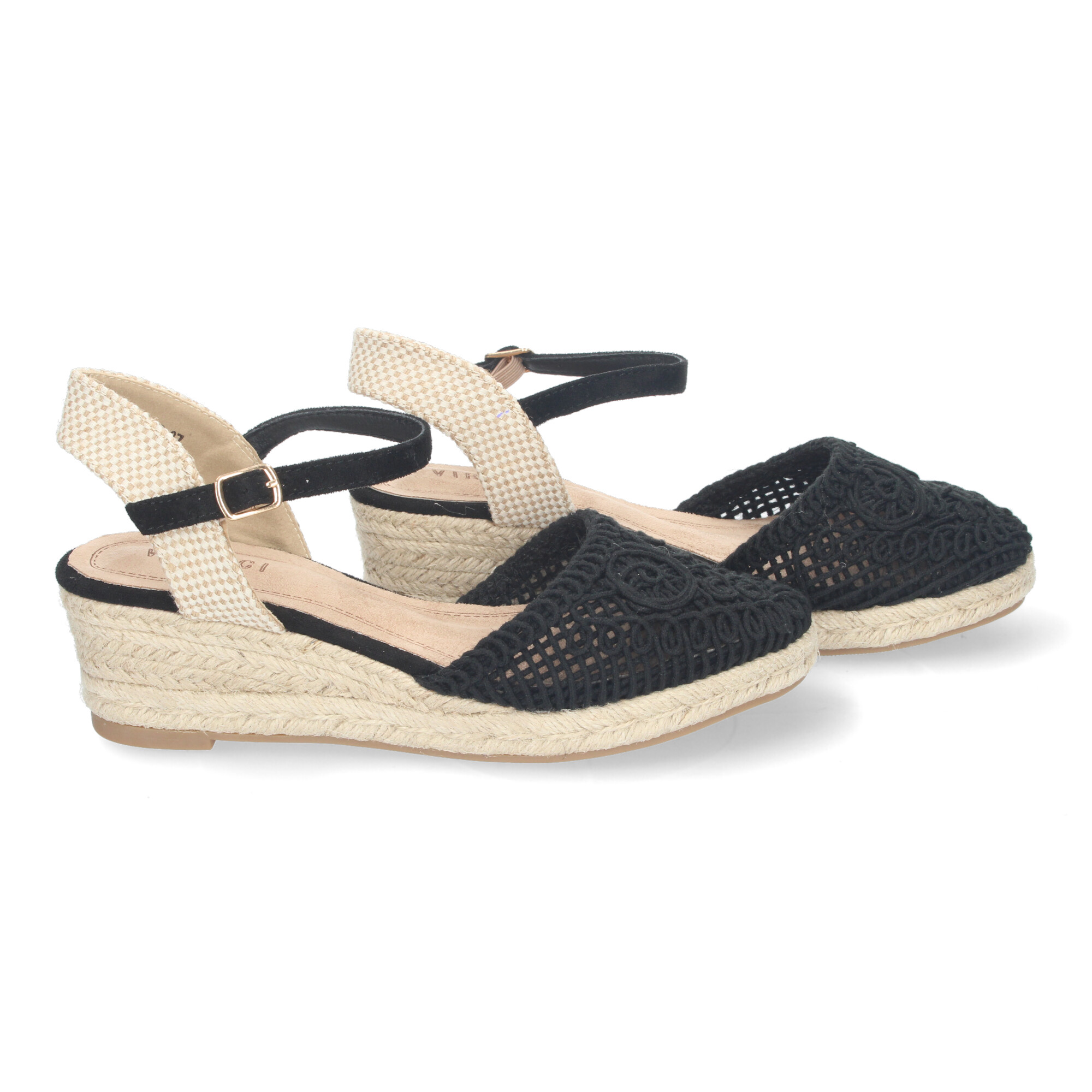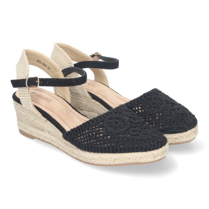 Sandalia de Cu?a de Yute para Mujer Estilo Valenciana con Pala Bordada Cierre de Hebilla ideal para Primavera-Verano.