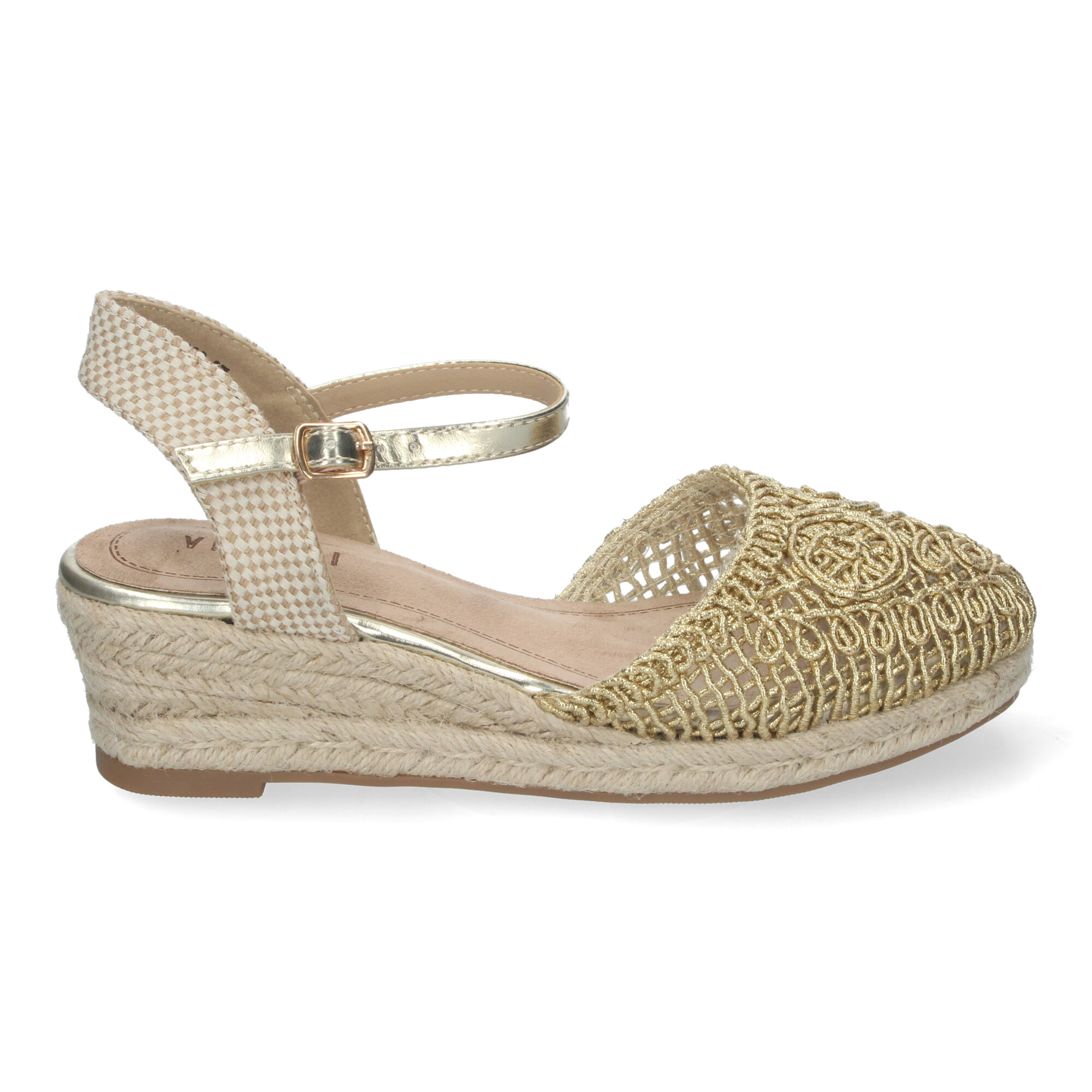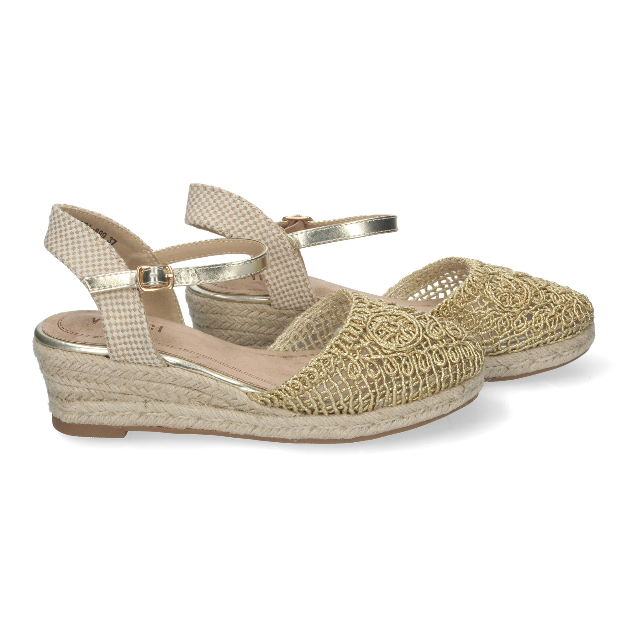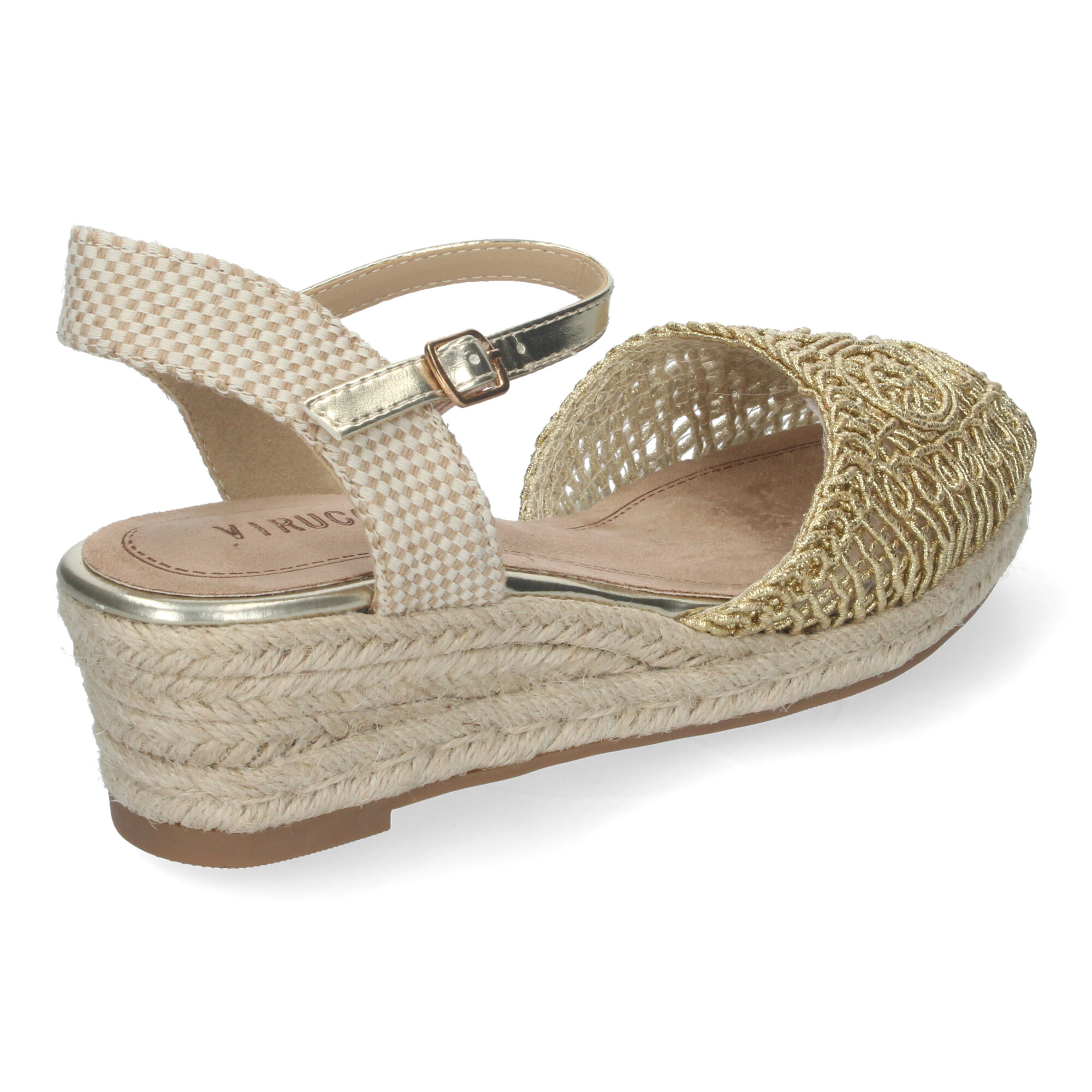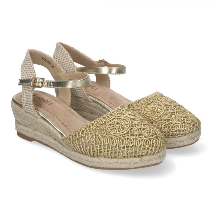 Sandalia de Cu?a de Yute para Mujer Estilo Valenciana con Pala Bordada Cierre de Hebilla ideal para Primavera-Verano.