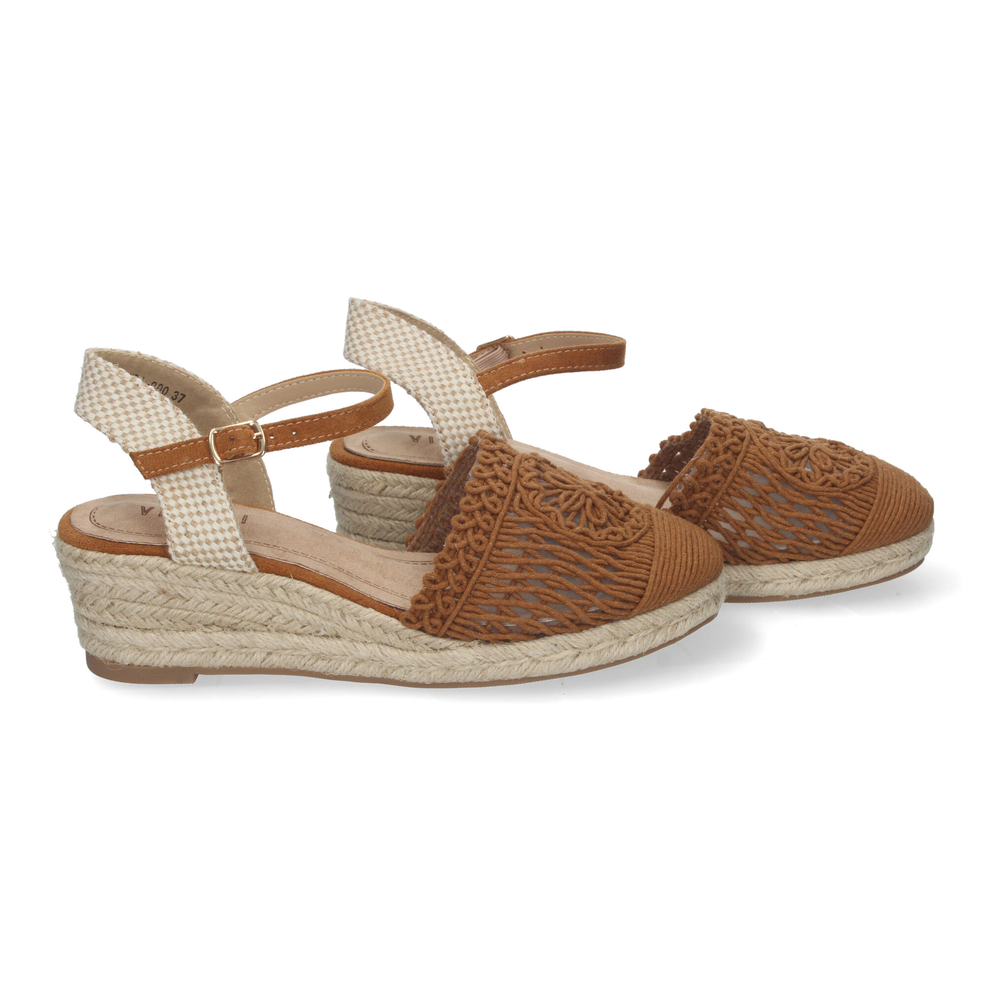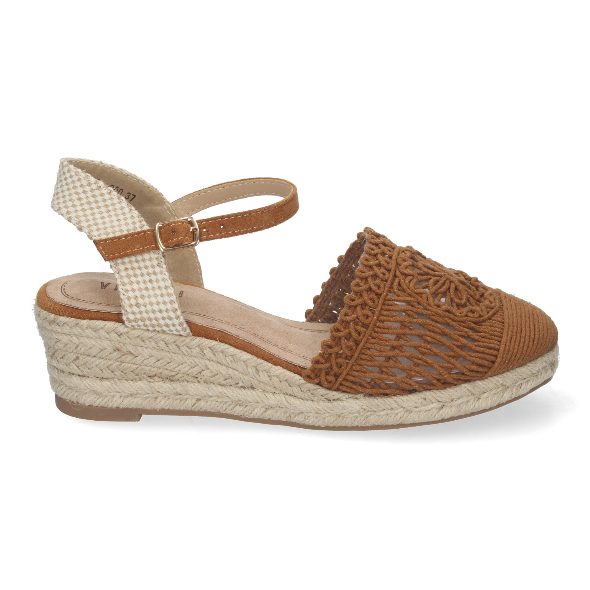 Sandalia de Cu?a de Yute para Mujer Estilo Valenciana con Pala Bordada Cierre de Hebilla ideal para Primavera-Verano.
