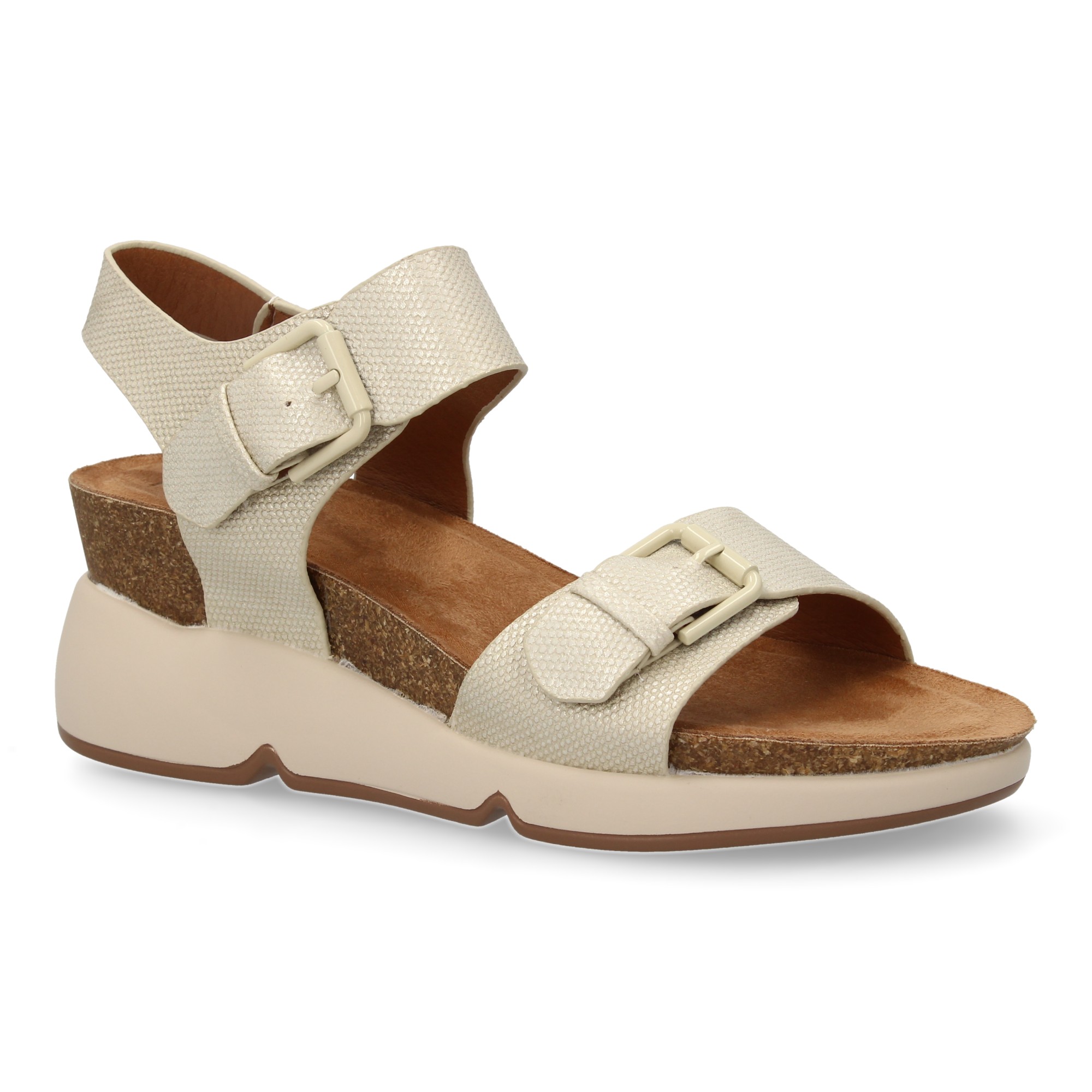 Sandalia de cu?a para mujer con planta bio dise?o moderno con doble cierre de hebilla comodas y elegantes ideales para primavera-verano.