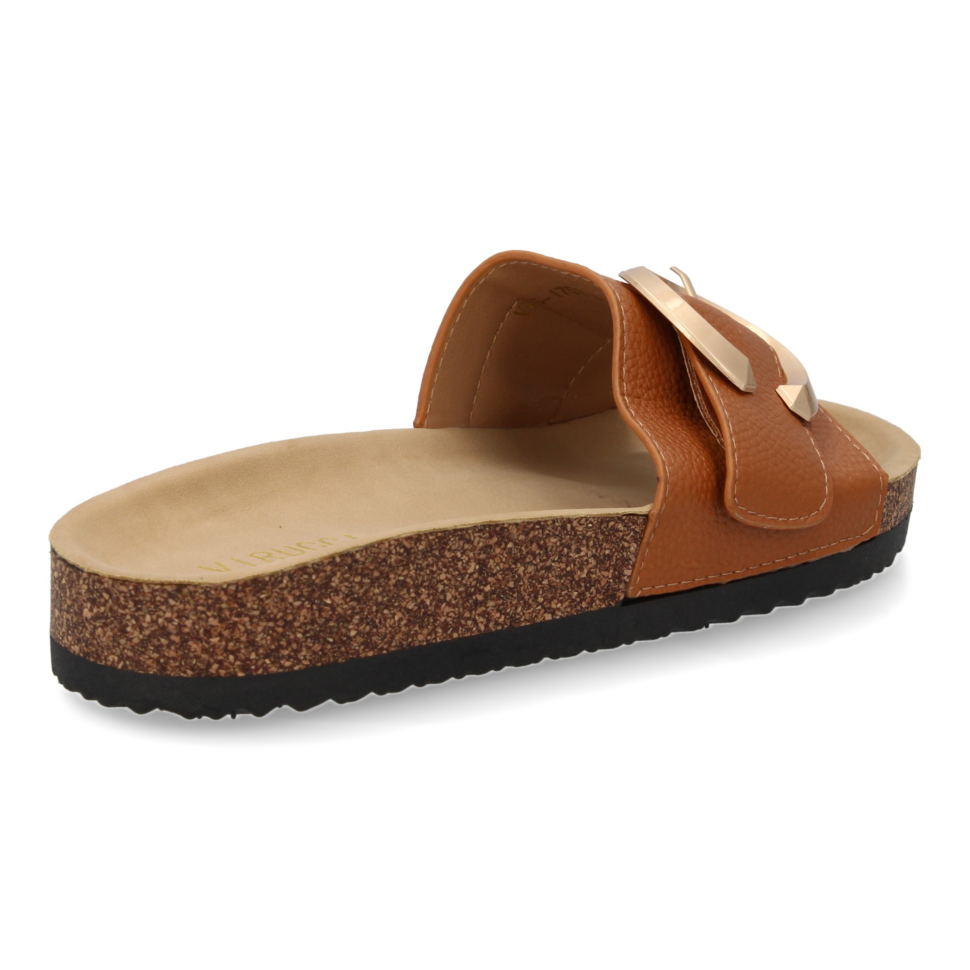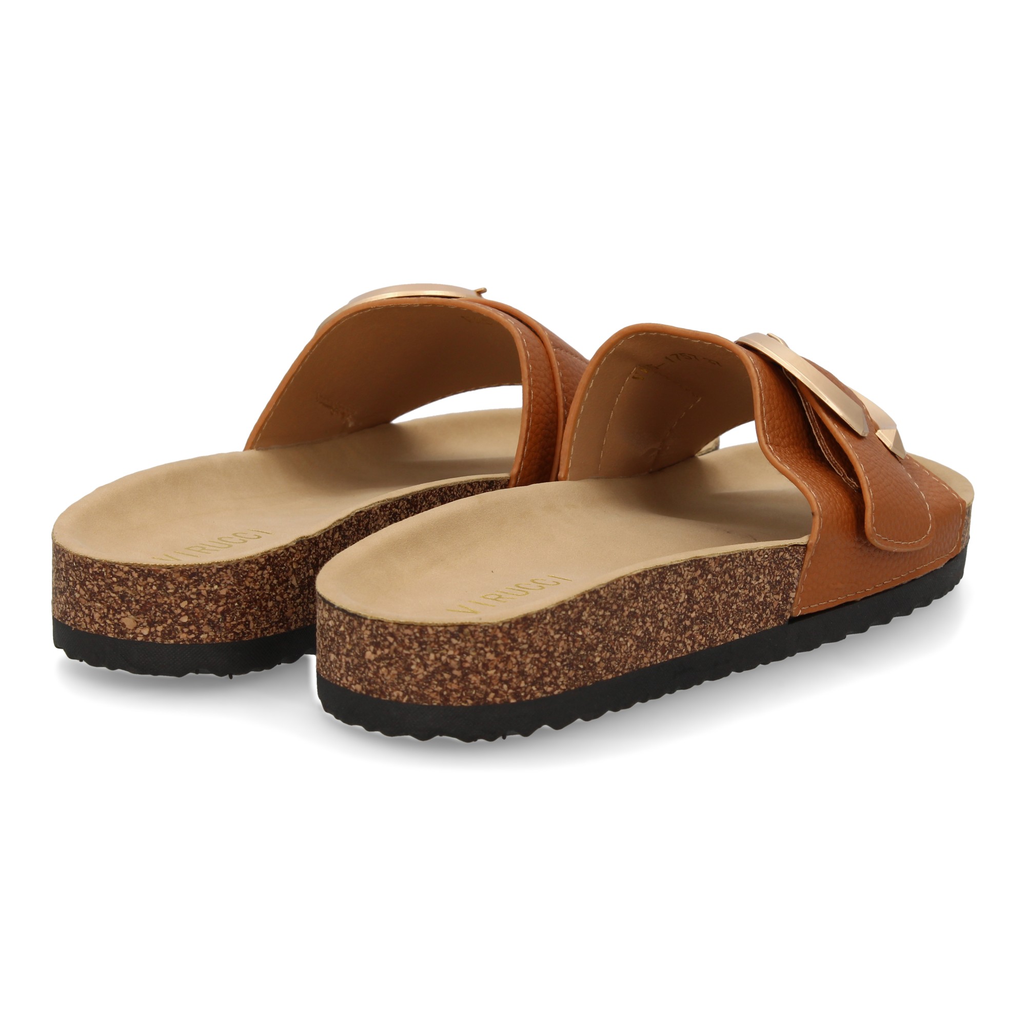 Sandalia plana de mujer comoda y elegante dise?o moderno con material bio detalle metalico en la pala ideales para primavera verano.