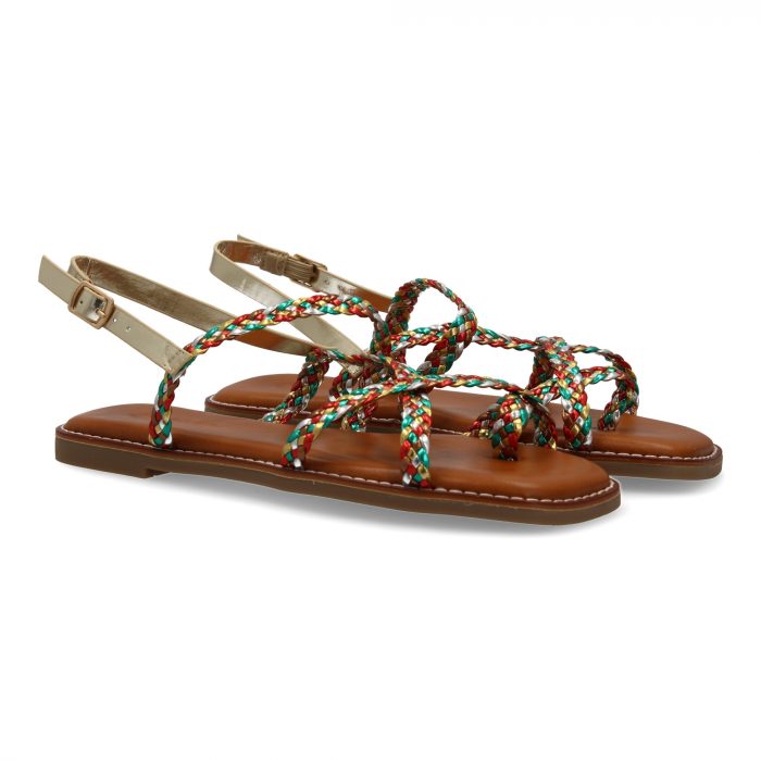 Sandalias planas de mujer elegantes y comodas dise?o trenzado con cierre de hebilla ajustables ideales para el d?a a d?a.