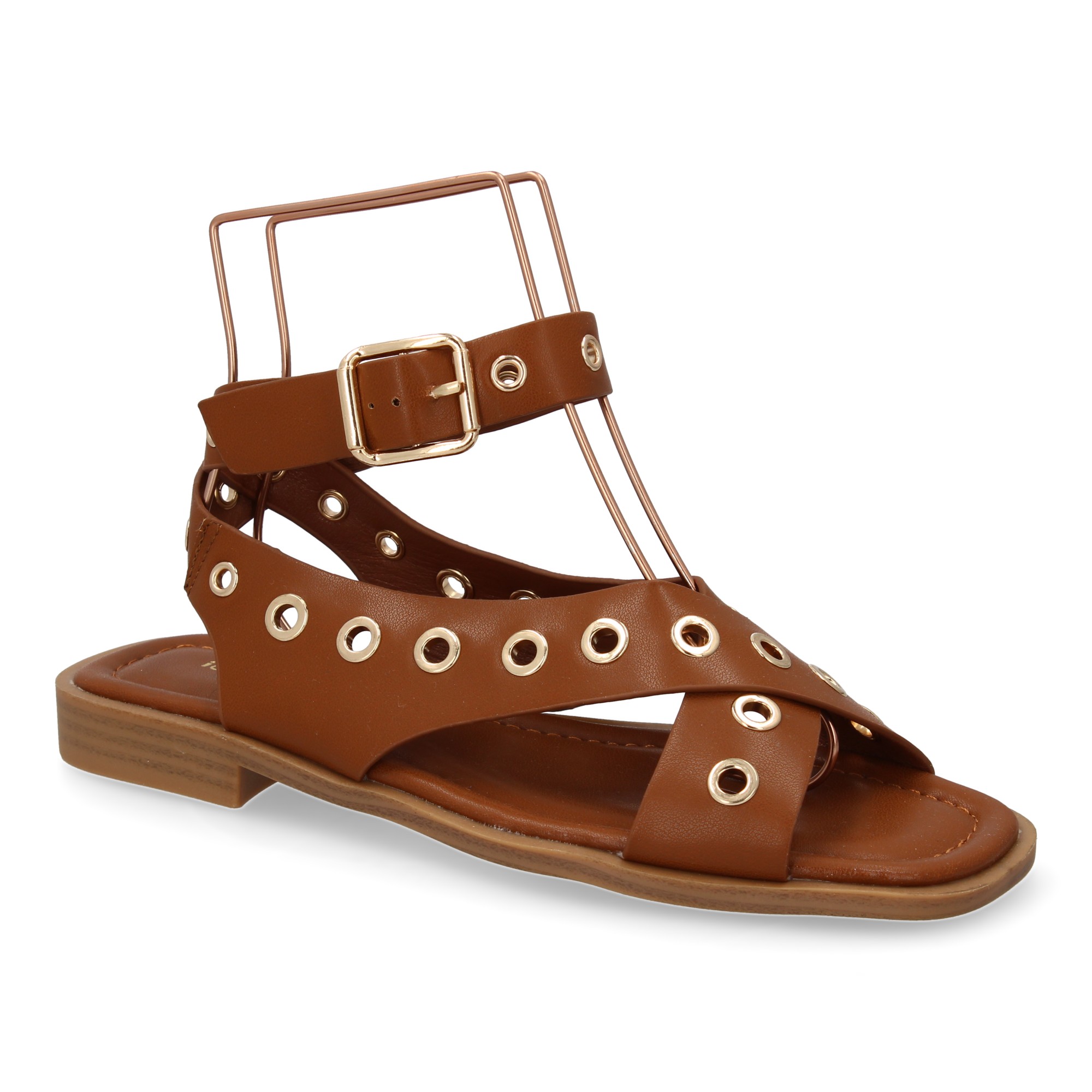 Sandalias planas de mujer comodas y elegantes dise?o moderno con ojales ideales para primavera-verano con cierre de hebilla.