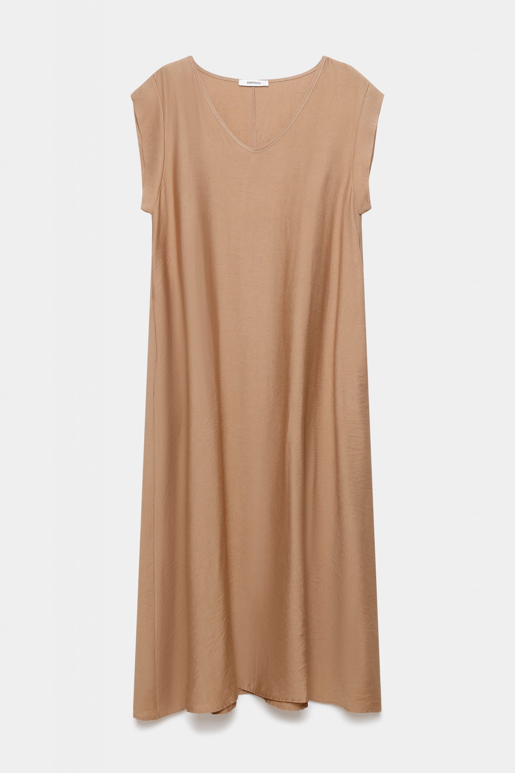 Tejido fino y fluido. Escote pico. Manga sisa. Talla única. Sisa a sisa 55cm. Largo 130cm. Desde una 36 hasta una 44.